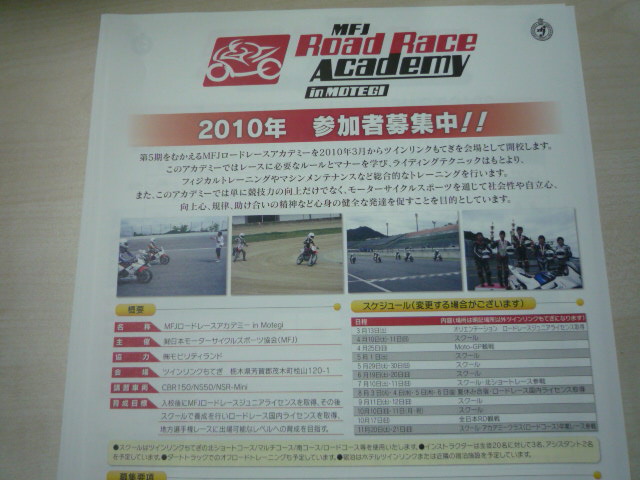 ロードレースアカデミーの申し込み開始(希望者はこちらまで)